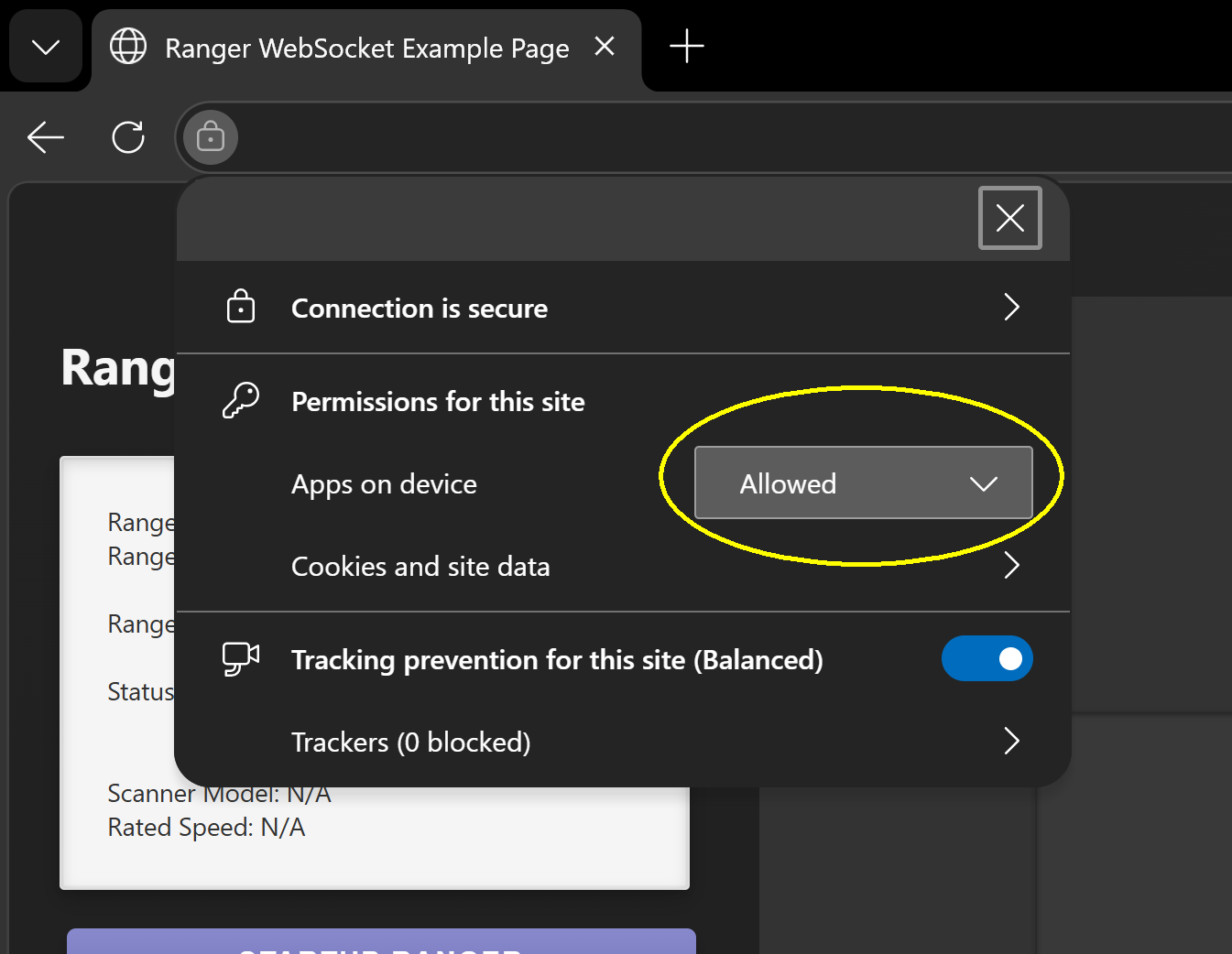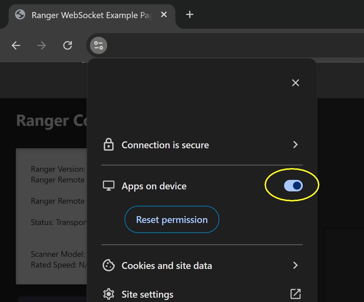 Going forward, users may be prompted by their browser to explicitly allow the website or web application to access the device. This permission is required for the application to communicate with the local Ranger Remote service.